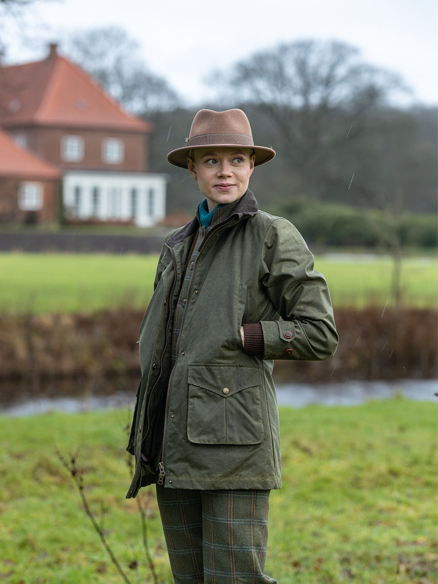 Our unique oilskin quality is produced in collaboration with one of the world's leading producers of waxed cotton, at Halley Stevensons in Dundee, Scotland. The unique wax treatment and cotton quality provide a weather-resistant and hard-wearing performance, combined with the unique expression oilskin has.
